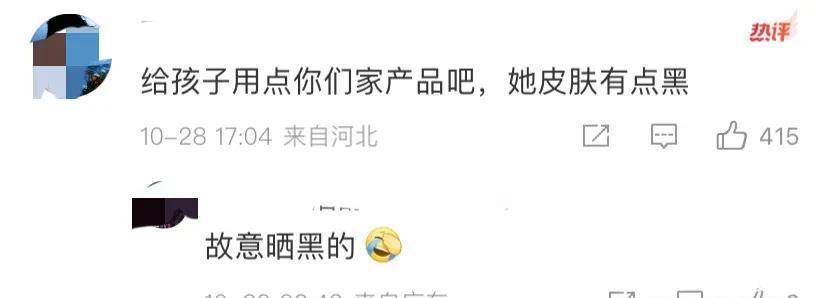 评论区的网友留言也是精准吐槽。“姐姐那两张露肚子照片摄影师咋想的,那个动作像孕妇照。”“给孩子用点你们家产品吧,她皮肤有点黑。”