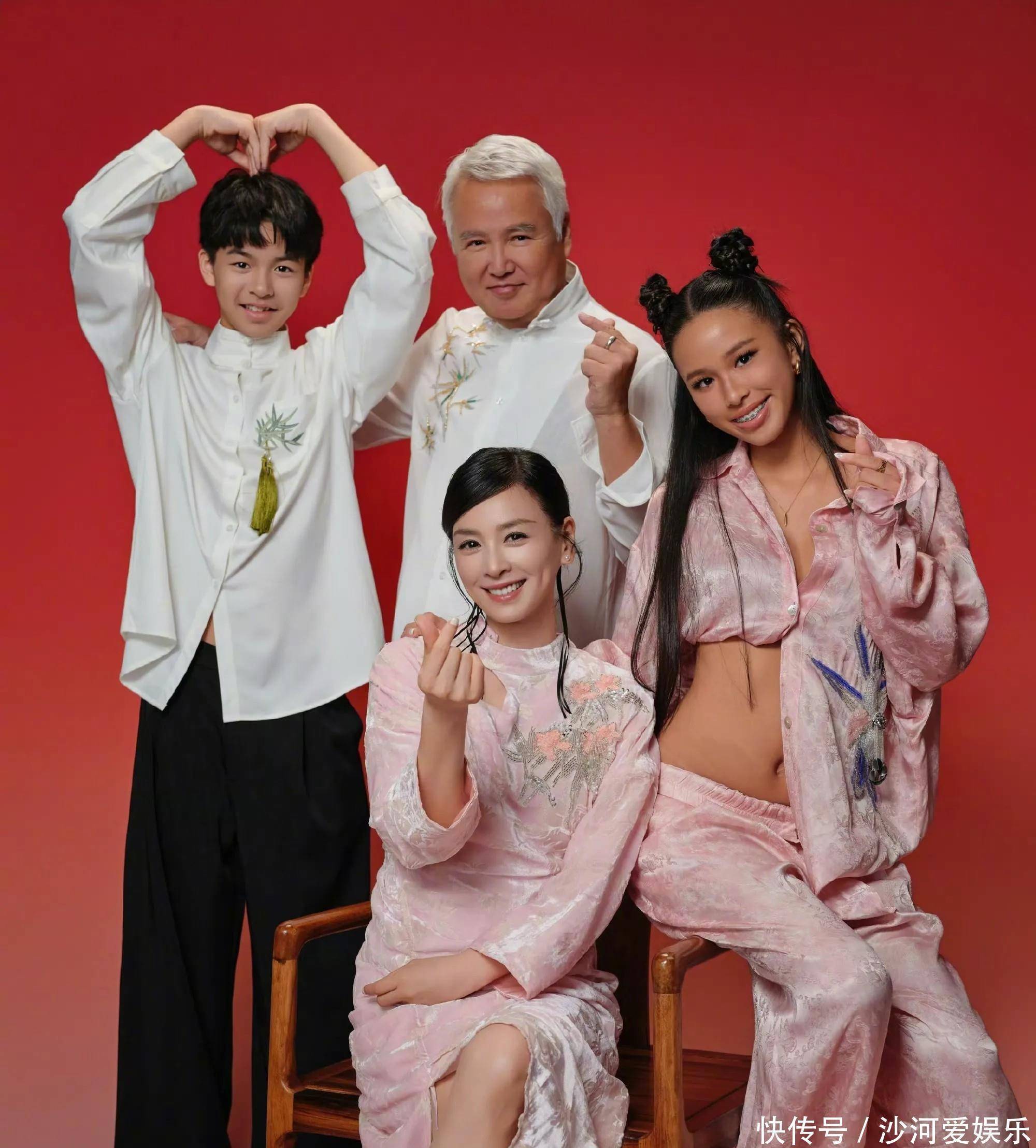 张庭晒全家福,一家四口像三代人,孩子皮肤黑,打扮辣眼睛!